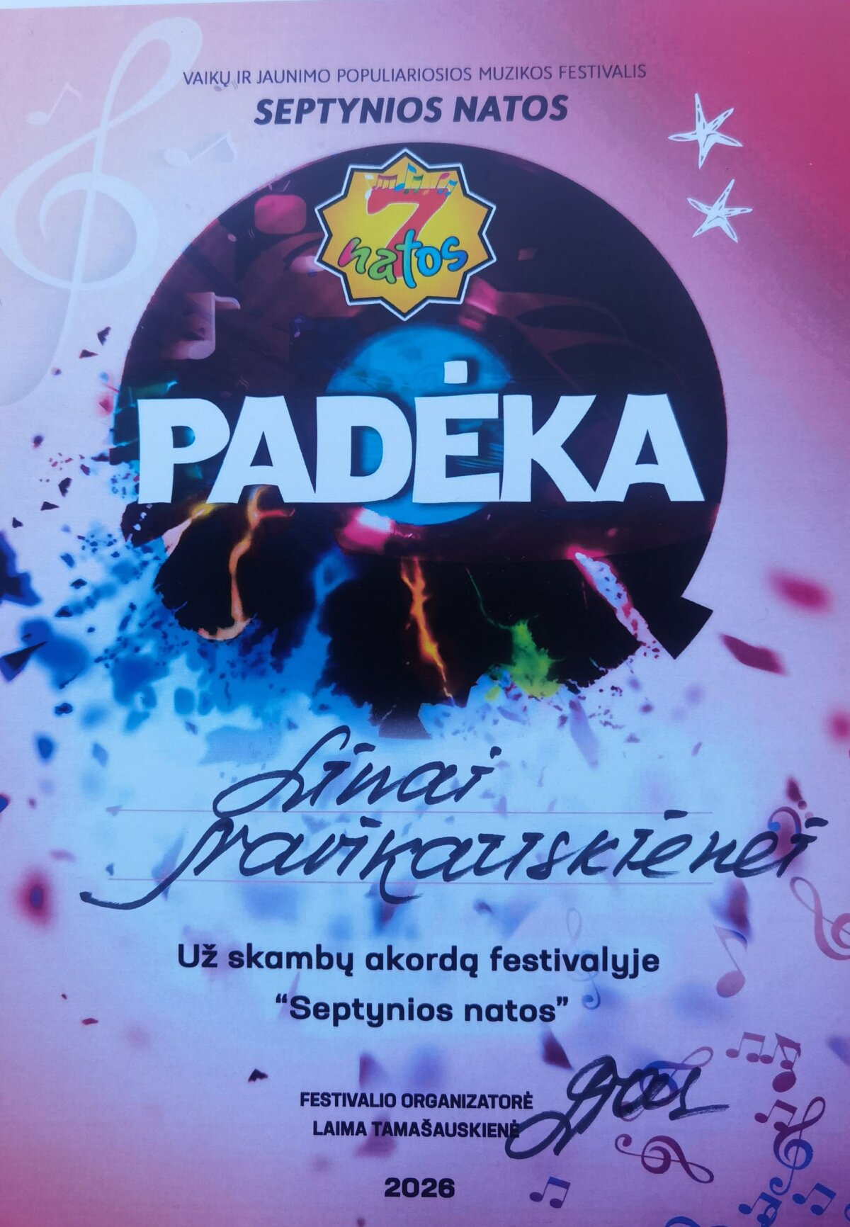 „Didžiausias džiaugsmas – matyti, kaip vaikai auga scenoje ir vienas kitą jaučia be žodžių.“ – mintimis po prabėgusio festivalio dalijasi kolektyvą paruošusi muzikos mokytoja Lina Navikauskienė.