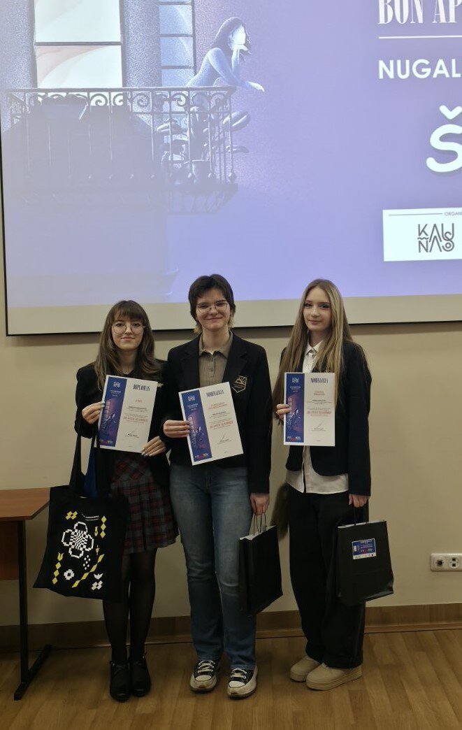 Gabrielė Padimanskaitė (III B kl.) laimėjo II-ąją vietą, Gerda Sagataitė (I A kl.) – nominaciją „Už skaniausią patiekalo vaizdą“, Emilija Miliūnaitė (I B kl.) – nominaciją „Už kūrybinę raišką ir išmanų medžiagų panaudojimą“.