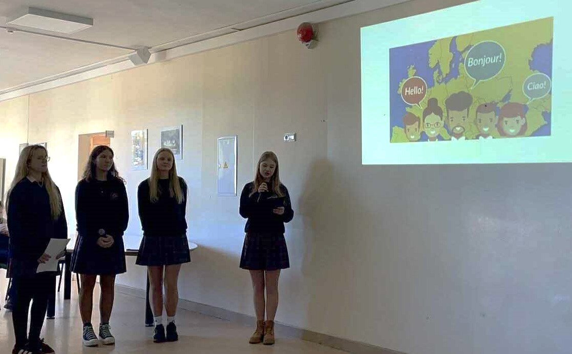 „Kalba – langas į pasaulį“, taip vadinosi Europos kalbų dienai paminėti skirtas renginys, kuris Europos Tarybos ir Europos Sąjungos Komisijos iniciatyva vyksta jau dvidešimt penktą kartą. Rugsėjo 26-ąją gimnazijoje vykusio Europos kalbų minėjimo dalyviai buvo kviečiami klausytis ir atrasti kalbų įvairovę. Pertraukų metu MEPA jaunieji ambasadoriai pristatė mūsų mokykloje dėstomas užsienio kalbas: ispanų, prancūzų, vokiečių ir anglų, supažindino ne tik su kalbų ypatumais, šmaikščiais posakiais, bet ir su įžymiomis tų šalių vietomis bei kultūra. Po prezentacijos vyko ,,Kahoot’’ viktorina, kurioje pasitikrinome žinias, o aktyviausi ir įdėmiausiai klausęsi dalyviai buvo apdovanoti prizais.