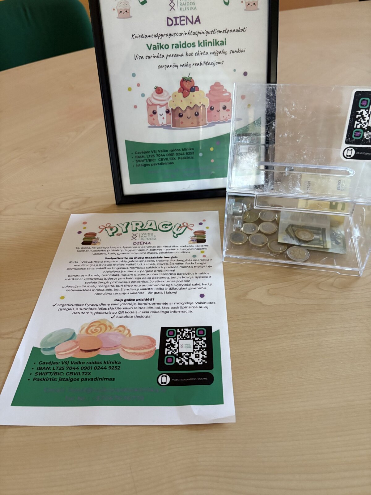 Renginio metu buvo pastatytos aukų dėžutės, į kurias kiekvienas galėjo paaukoti laisvai pasirinktą sumą. Visi surinkti pinigai – ir iš pyragų pardavimo, ir paaukoti – buvo skirti paramos fondui, padedančiam sergantiems vaikams.