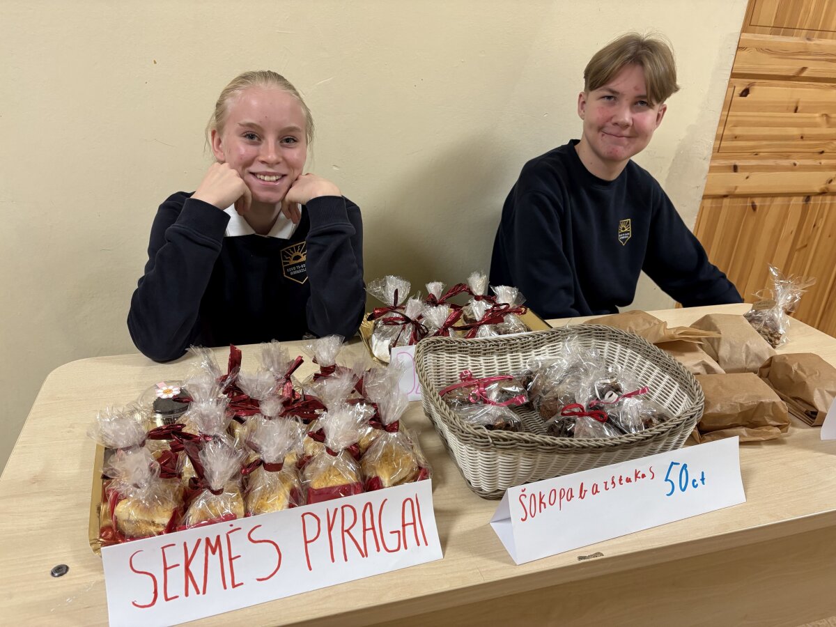 Lapkričio 10 dieną mūsų mokykloje vyko jau tradicija tapusi „Pyragų diena“. Iš vakaro mokiniai kartu su tėveliais kepė, o pirmadienį besišypsantys kepėjai maloniai prekiavo savo pagamintais pyragais. Klasėse ir koridoriuose tvyrojo jaukūs kvapai, ant stalų puikavosi įvairiausi kepiniai – nuo šokoladinių pyragų iki želinių tortų.