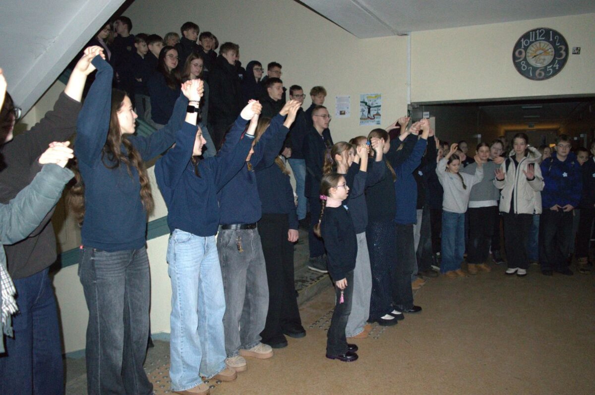 Mūsų gimnazijos bendruomenė susibūrė į renginį, kurį prasmingais žodžiais pradėjo direktoriaus pavaduotoja ugdymui Lina Šakelytė ir visi susikaupę giedojo Lietuvos Respublikos himną. Į susirinkusius gimnazistus ir mokytojus kreipėsi ir MEPA narės. Jaunosios ambasadorės priminė tos nakties baisius įvykius, kai laisvė buvo apginta drąsa,vienybe ir tikėjimu. Gimnazijos languose švietė atminimo liepsnelės, kurios simbolizuoja gyvą ,,ačiū”, pažadą nepamiršti, tylų patvirtinimą, kad esame laisvi gynėjų dėka.